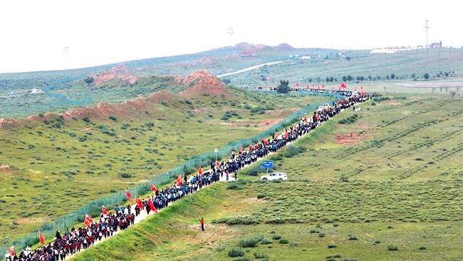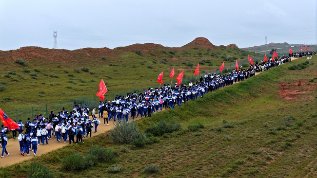 活動由點(diǎn)及線、以線成面、多方聯(lián)動,全程沿著中國戶外運(yùn)動精品徒步線路——寧夏鹽池長城山地徒步廊道往返40公里,讓青年學(xué)子們在徒步行走中體驗(yàn)革命先烈們的信念與忠誠,感悟革命先烈們的堅(jiān)強(qiáng)意志,見證革命先烈們用熱血和汗水換取的光明大道和光榮歲月。