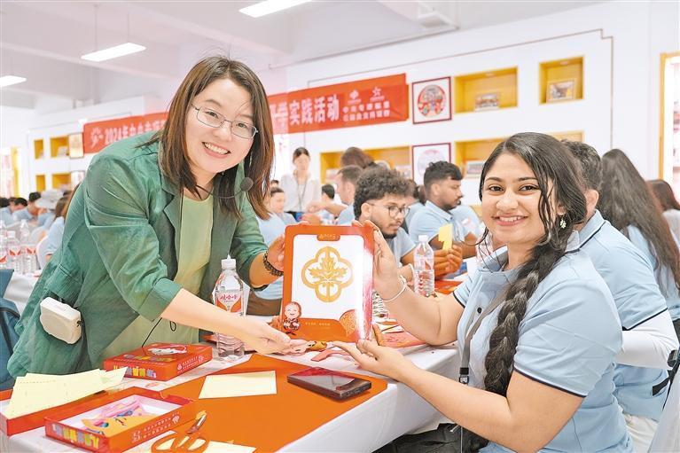 “這簡直太神奇了!”來自哈薩克斯坦的賈斯敏·伊曼巴耶娃睜大了眼睛,“這些剪紙作品就像變魔術(shù)一樣出現(xiàn),我第一次知道,原來中國剪紙可以不用畫稿,全憑手感。”在她的請求下,老師手把手指導(dǎo)她進行創(chuàng)作,從紙張選取、折紙定型到剪制圖案,每一個步驟都耐心講解。