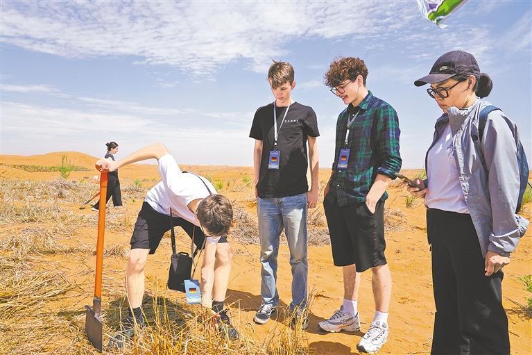 8月9日,沙坡頭治沙示范區(qū)烈日灼灼,迎接青年代表們的是體驗扎制草方格。在治沙工程師的指導(dǎo)下,青年代表們共同將麥草縱橫交錯地壓入沙中,織就一片金色網(wǎng)格?!斑@簡直是人類智慧的奇跡!”拉斯·奎克特蹲在沙地上,仔細(xì)調(diào)整草格角度:“難以想象如何征服沙海。今天親手參與這項‘中國魔方’的鋪設(shè),才真正理解為什么它被稱為世界治沙典范?!?/p>