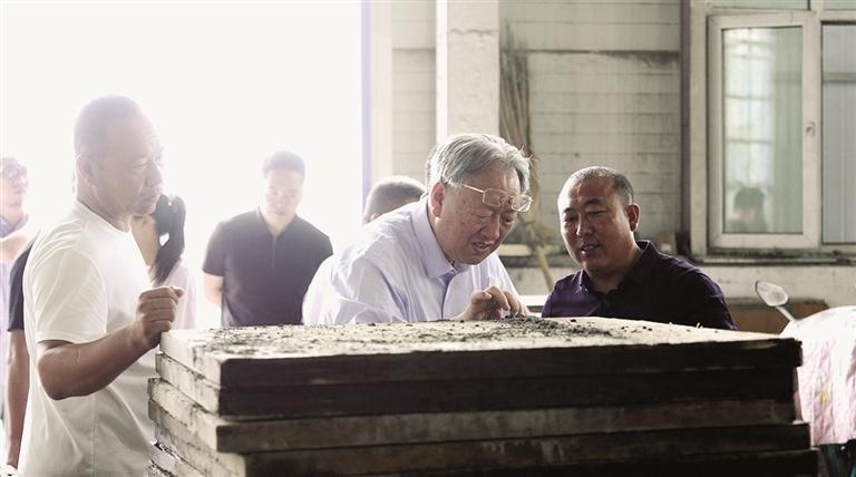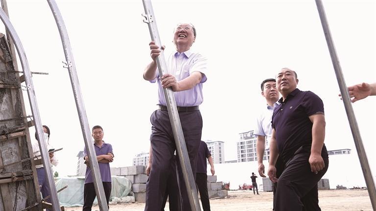 當(dāng)天9時(shí)許,銀川天色微陰,薄云掩日。李天來(lái)一行自市區(qū)出發(fā),驅(qū)車(chē)前往金鳳區(qū)豐登鎮(zhèn)田園綜合體建設(shè)項(xiàng)目現(xiàn)場(chǎng)。路上,李天來(lái)不時(shí)向窗外眺望,對(duì)沿途農(nóng)田景象充滿(mǎn)興趣。到達(dá)工地后,他即刻下車(chē),隨寧夏錦繡世紀(jì)科技有限公司負(fù)責(zé)人王義軍直奔一座在建的日光溫室大棚,細(xì)致察看工程每一處細(xì)節(jié)。