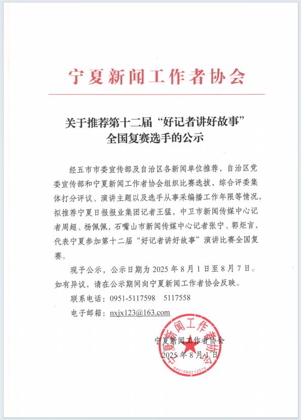 關(guān)于推薦第十二屆“好記者講好故事”全國復(fù)賽選手的公示