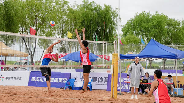 7月24日,沙灘排球運動員在比賽中。當日,2025年全國沙灘排球巡回賽(寧夏吳忠站)暨中華人民共和國第十五屆運動會沙灘排球資格賽,在吳忠濱河體育運動公園開賽,共有79支球隊參賽。 寧夏日報報業(yè)集團全媒體記者 李良 見習記者 馬磊 攝