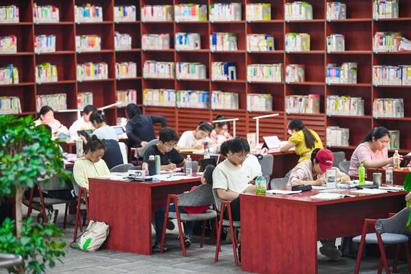 7月25日,市民在寧夏圖書館看書學(xué)習(xí)。近期,寧夏圖書館日均接待讀者量突破7000余人次,較日常接待量增長近一倍,圖書館已成為暑期市民學(xué)習(xí)、閱讀的熱門去處。 記者 馬楠 王洋 攝
