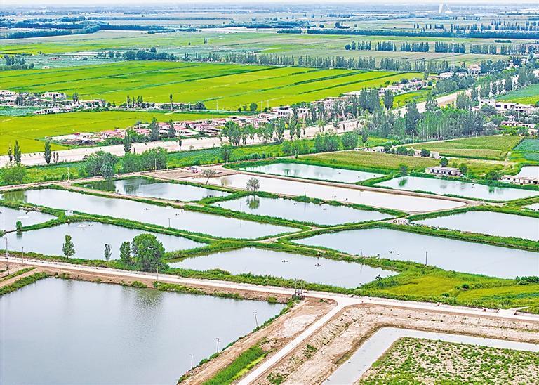一片片池塘與農田村落相連,形成塞上江南的魅力圖景。