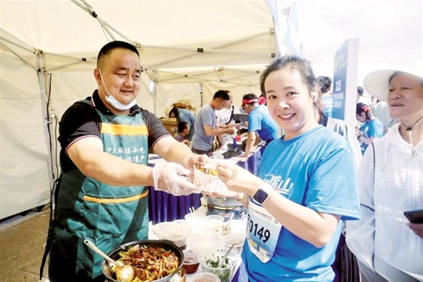 僅在特色補(bǔ)給站,就可以品嘗十幾種特色小吃和飲品,烤全羊、麻辣小龍蝦、大武口涼皮、平羅糖麻丫、石炭井糖酥餅、八寶茶……美食帶著石嘴山的熱情和體貼,以最樸素的方式溫暖了無數(shù)選手的胃與心。來自甘肅的跑友雒海寧吃著糖麻丫開心地說:“來石嘴山參賽前,從網(wǎng)上了解到不少這里的特色美食,想著跑完去逛逛好好品嘗下,沒想到在補(bǔ)給站就把石嘴山的美食嘗了個(gè)遍!”
