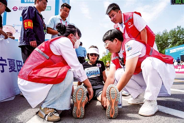 “看到賽道旁的急救人員和設(shè)備能‘隨叫隨到’,跑起來更有底氣了?!眮碜愿拭C的選手金生龍說。