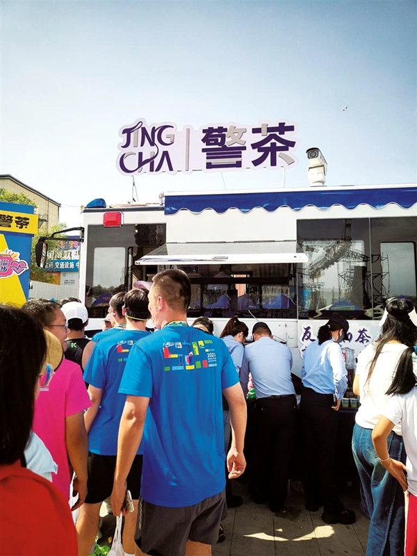 大武口警方現(xiàn)場派送“警茶”。