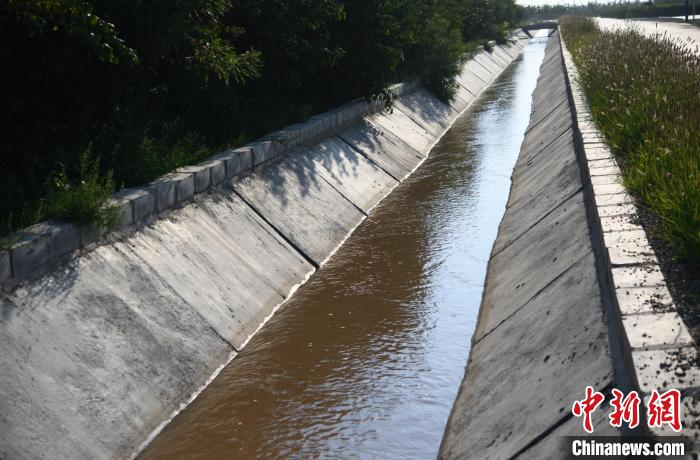 8月22日,水渠分支的黃河水靜靜往前流淌,為莊稼和農(nóng)民帶來無限的希望。凌學(xué)敏 胡珊珊 攝