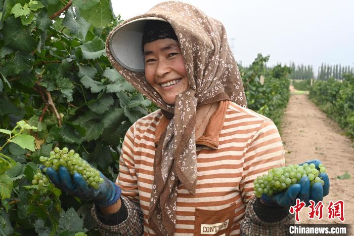 8月24日,采摘葡萄的工人的臉上露出了幸福的笑容。凌學(xué)敏 胡珊珊 攝
