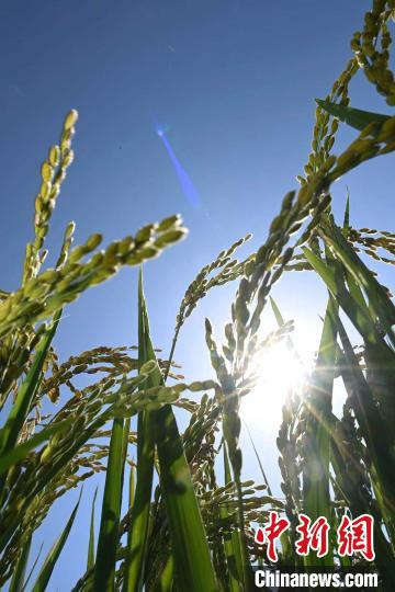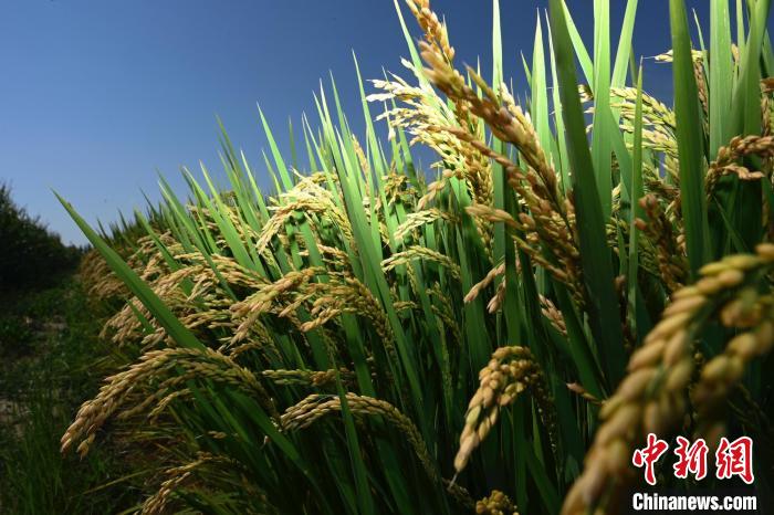 8月25日,陽光下,由黃河水灌溉的水稻已經(jīng)掛滿稻穗,挺拔且茂盛。凌學(xué)敏 胡珊珊 攝