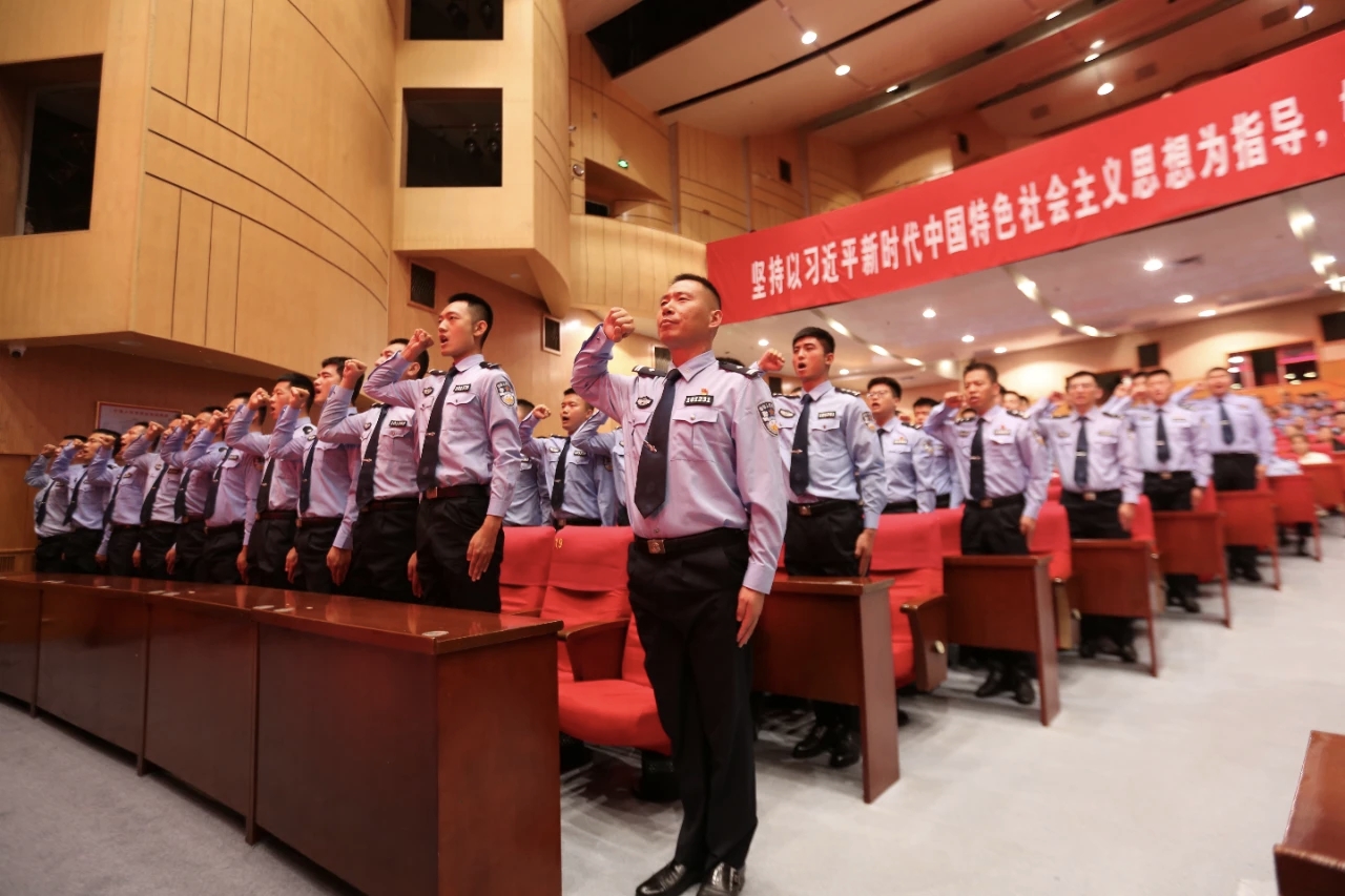 81名青年民警代表和81名政法系統(tǒng)退役軍人代表先后舉起右拳,分別宣讀公安機(jī)關(guān)人民警察誓詞和退役誓詞。兩種誓詞在會場鏗鏘回響,既是對英模精神的接力傳承,對建軍節(jié)的崇高致敬,更是對政法隊(duì)伍紅色基因的深情溯源。與軍隊(duì)血脈同源的政法隊(duì)伍將永葆對黨忠誠、聽黨指揮的堅(jiān)定信念,在平安寧夏建設(shè)中貢獻(xiàn)政法力量。