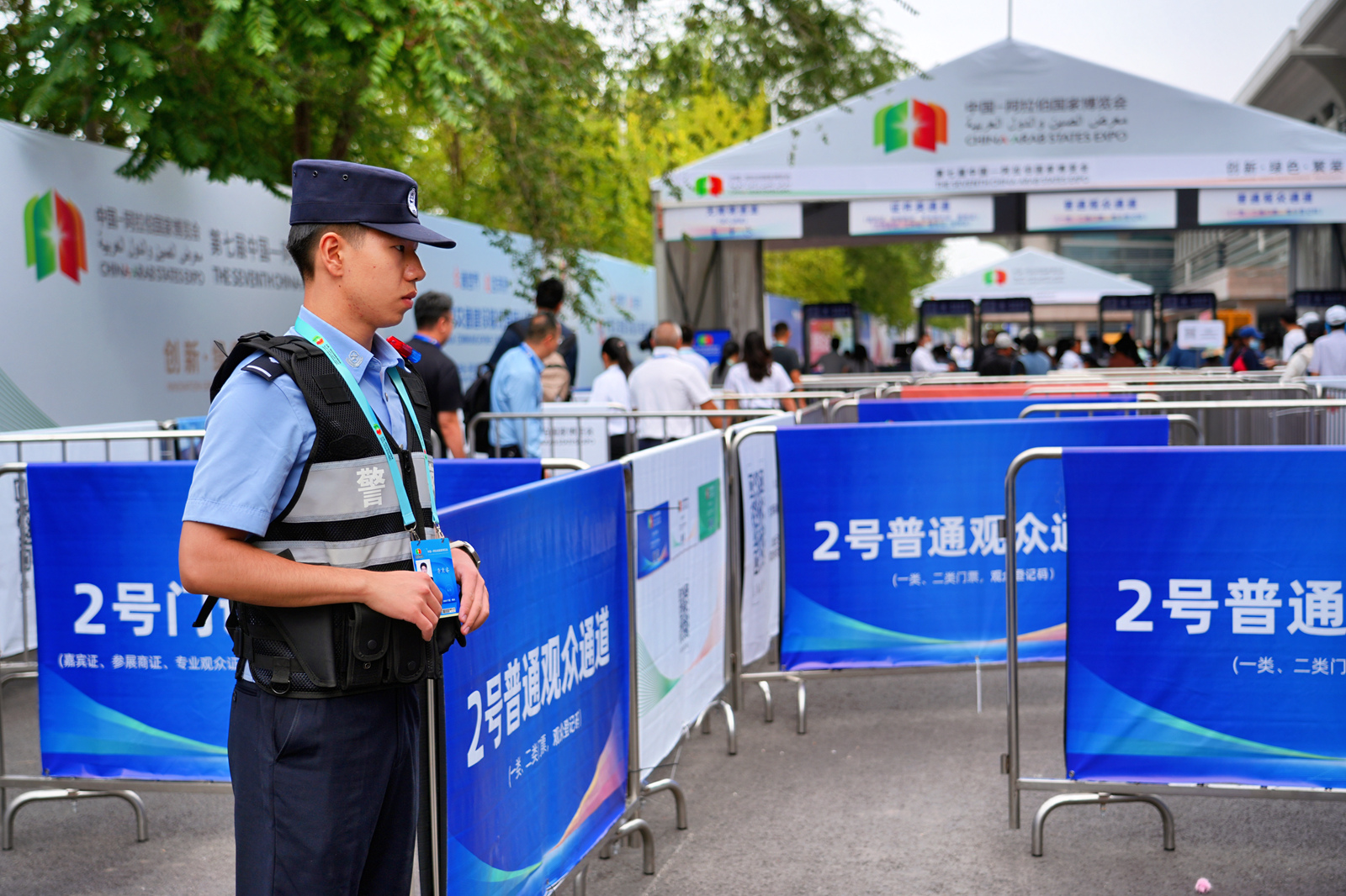 “您好,請(qǐng)過(guò)下安檢?!痹趫?chǎng)館入口,民警劉婧始終面帶微笑,耐心引導(dǎo)每一位入場(chǎng)展商和群眾。在第七屆中阿博覽會(huì)場(chǎng)館入口,一套融合智能感知、無(wú)接觸檢測(cè)和實(shí)時(shí)數(shù)據(jù)分析的智慧安檢系統(tǒng)——包括39部X光機(jī)+82部安檢門,正在高效運(yùn)行,既守牢了安全底線,也極大縮短了等候時(shí)間。