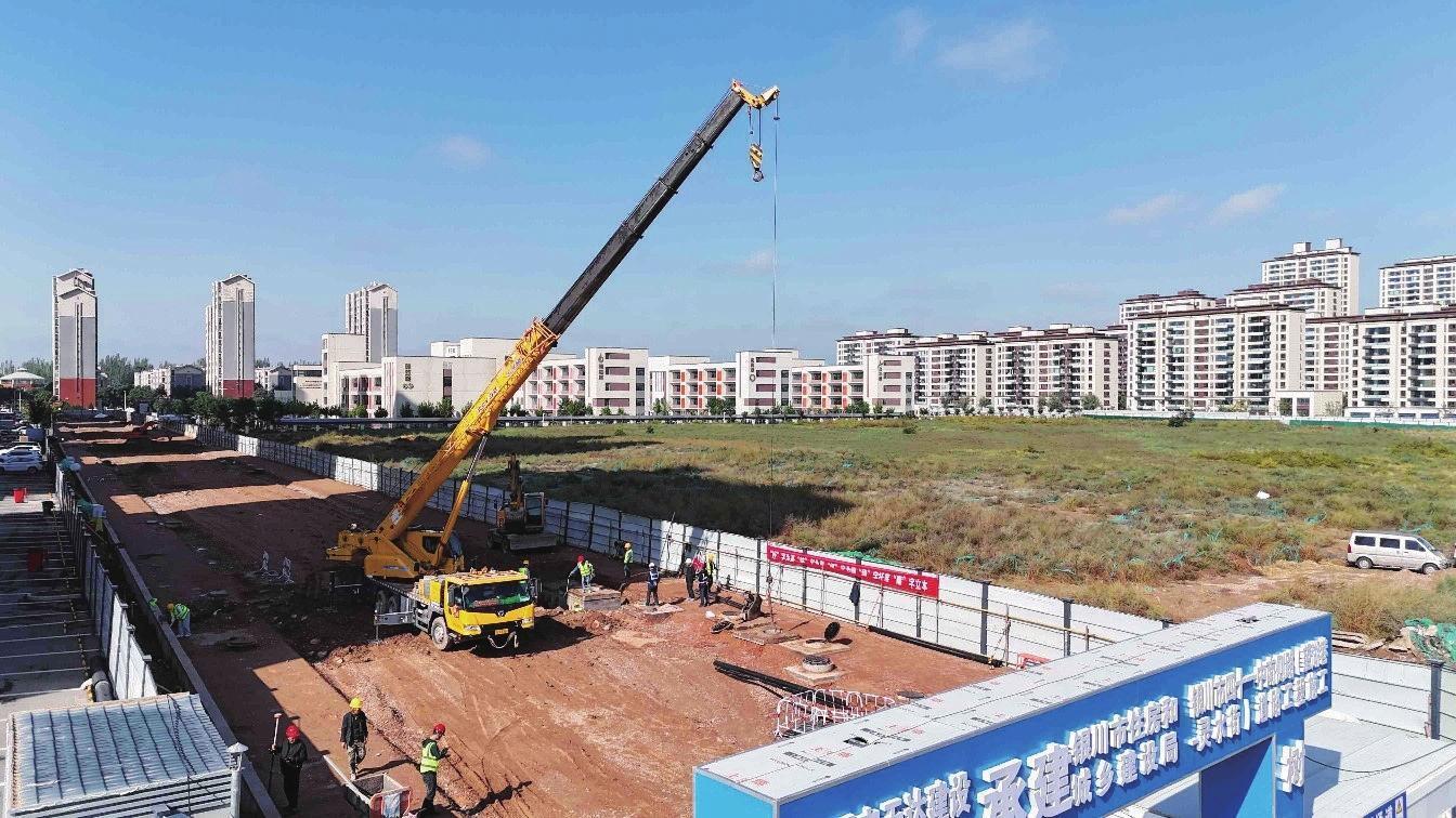 9月23日,銀川市第四十一中南側(cè)路(望湖巷-靈水街)道路工程正在加緊施工。