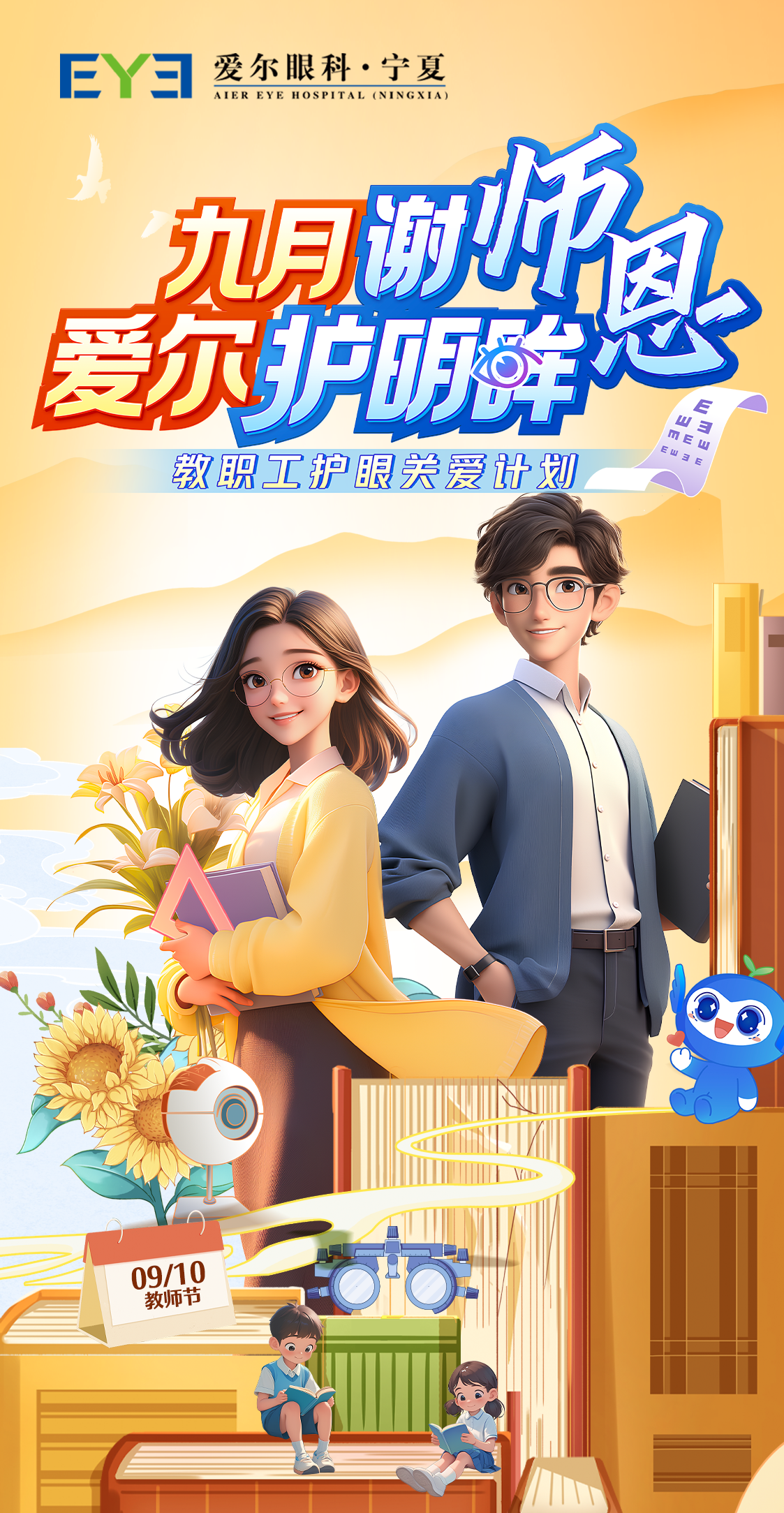 9月10日迎來第41個(gè)教師節(jié)。在這個(gè)致敬師恩的特殊日子里,寧夏愛爾眼科醫(yī)院向每一位辛勤耕耘在三尺講臺(tái)的教育工作者,致以最崇高的敬意與最真摯的節(jié)日祝福!同時(shí),醫(yī)院以專業(yè)視角,為教師朋友們送上一份實(shí)用的眼部健康守護(hù)指南,愿每一位師者都能擁有清晰視界,繼續(xù)點(diǎn)亮教育之光。