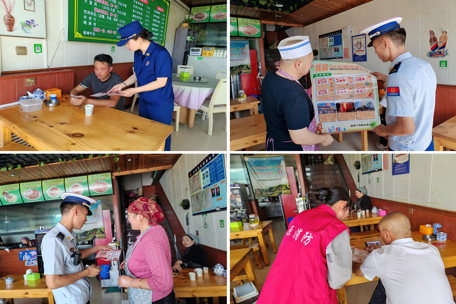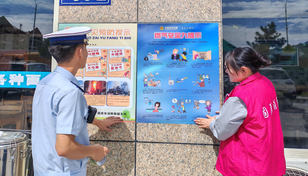 志愿者還在餐飲場所出入口等醒目位置張貼餐飲場所及燃氣安全提示宣傳海報,以直觀的圖文形式,讓消防安全提示隨處可見。