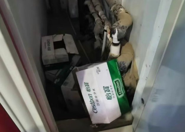存在隱患:1.封閉樓梯間內(nèi)堆放雜物(廢舊沙發(fā));2.管道井內(nèi)堆放雜物(廢紙箱);3.消防救援口未設(shè)置救援口標識。