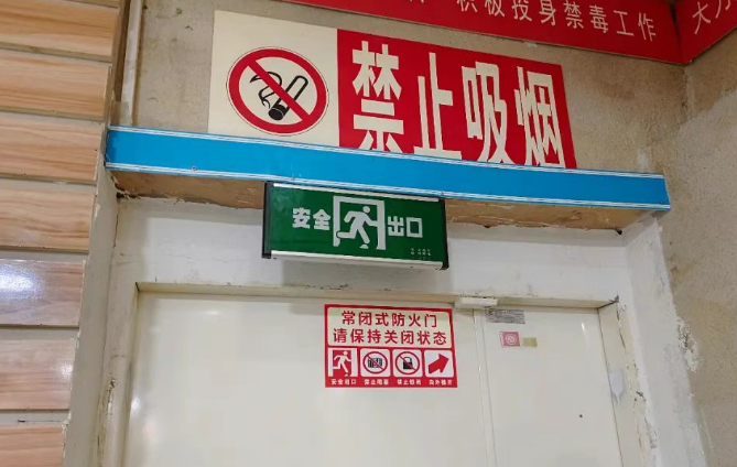 存在隱患:1.二層常閉式防火門閉門器、順序器損壞;2.常閉式防火門使用雜物遮擋,未保持常閉狀態(tài)(堵塞封閉式疏散通道、安全出口)。