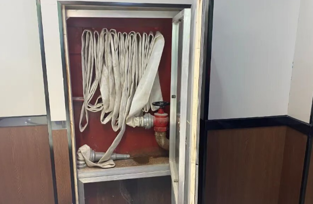 存在隱患:該場所消火栓未保持完好有效(消火栓水帶卡口松動,消防水帶單卷)。