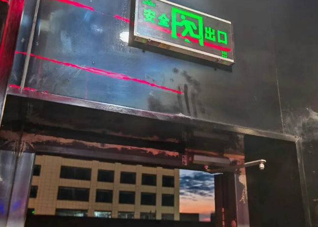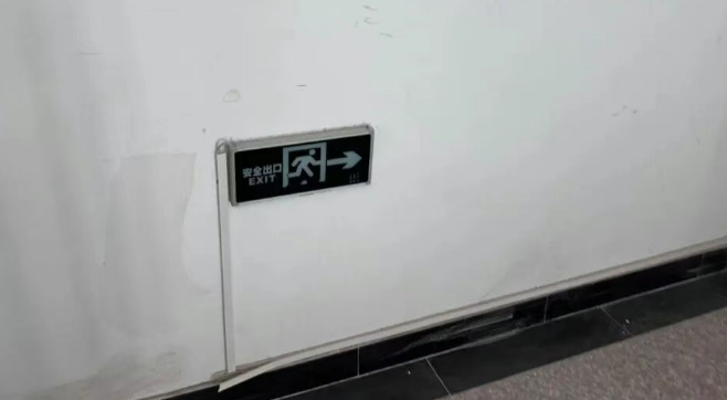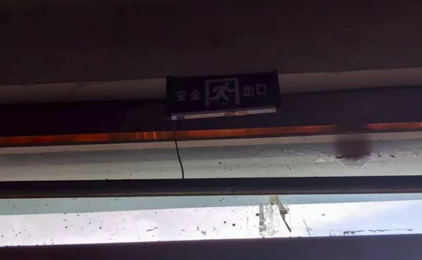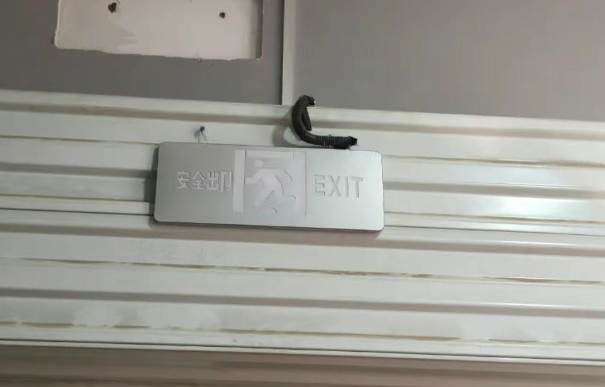 存在隱患: 1. 四層北側(cè)安全出口處防火門順序器失效;2. 四層南側(cè)安全出口處設(shè)置卷簾門;3. 四層南側(cè)安全出口處安全出口標志燈未通電。