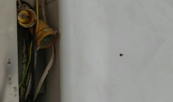 存在隱患:1.室內(nèi)消火栓銹蝕;2.手動報警按鈕被冰箱遮擋。